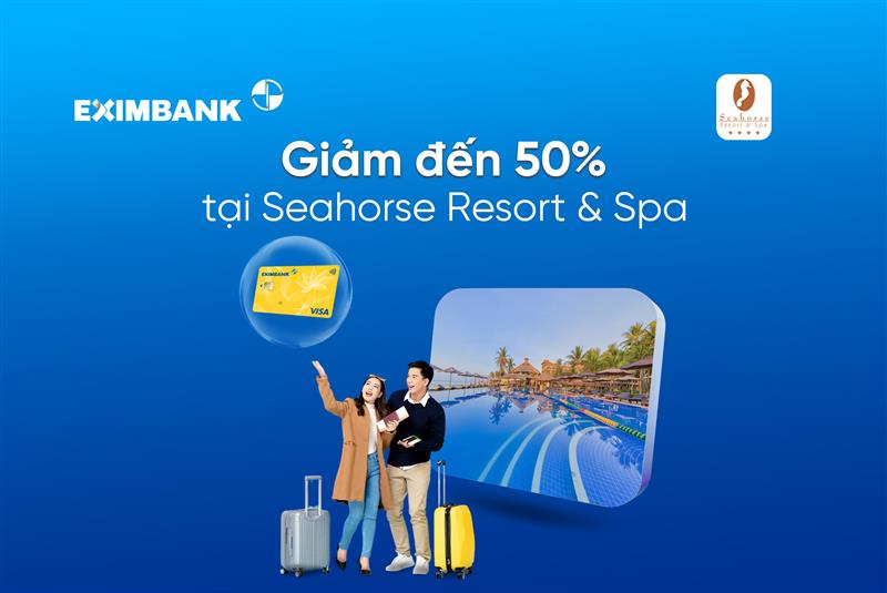 - Giảm giá 50% (dựa theo giá giá công bố) cho chủ thẻ Eximbank khi đặt phòng tại Seahorse Resort & Spa