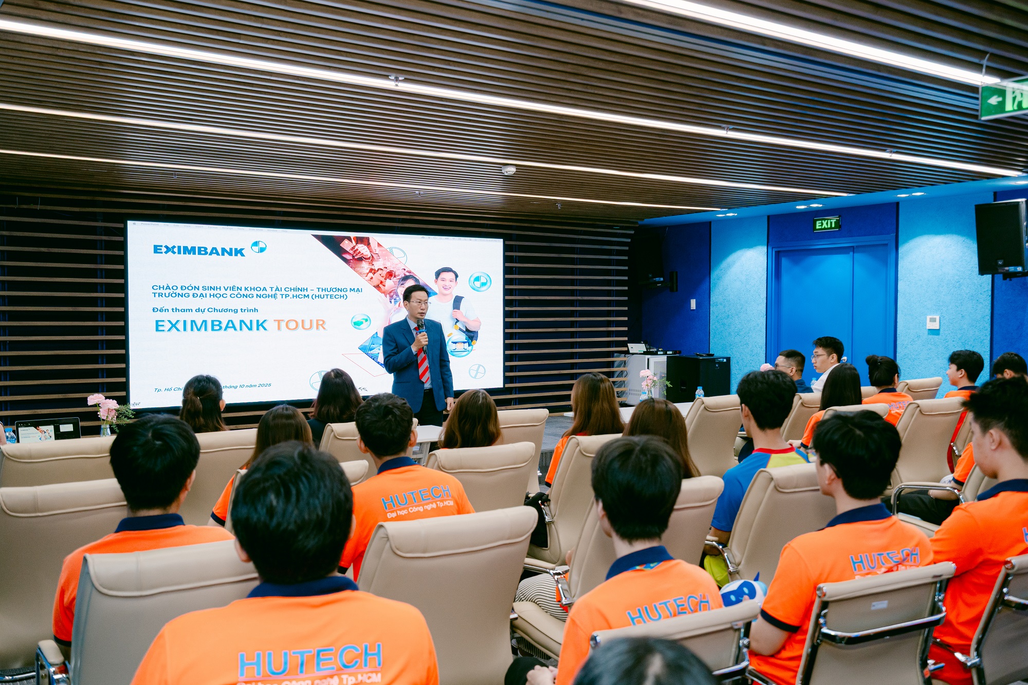 Chương trình do Phòng Tuyển dụng nhân tài Eximbank phối hợp cùng Khoa Tài chính – Thương mại, Trường HUTECH tổ chức, nhằm giúp sinh viên hiểu rõ hơn về hoạt động của ngân hàng thương mại, các nghiệp vụ cơ bản và môi trường làm việc thực tế.