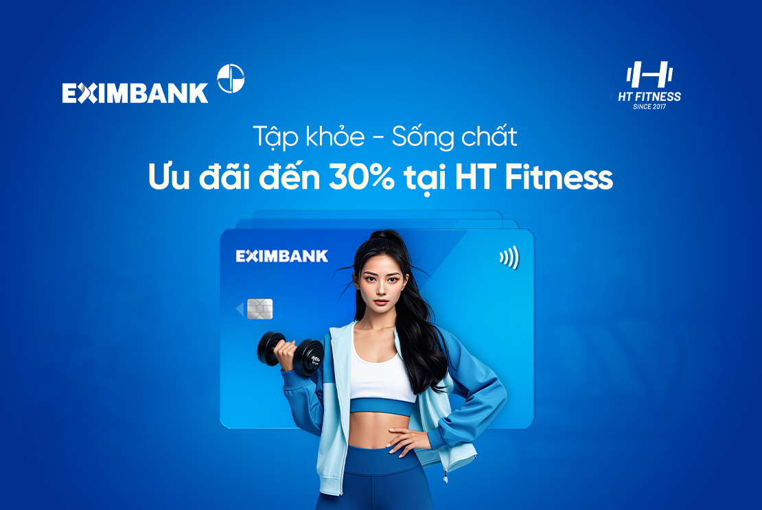 Khỏe đẹp – Tự tin – Năng động cùng Thẻ Eximbank khi bạn đến với HT Fitness, hệ thống phòng tập hiện đại với trang thiết bị tối tân và không gian luyện tập chuyên nghiệp