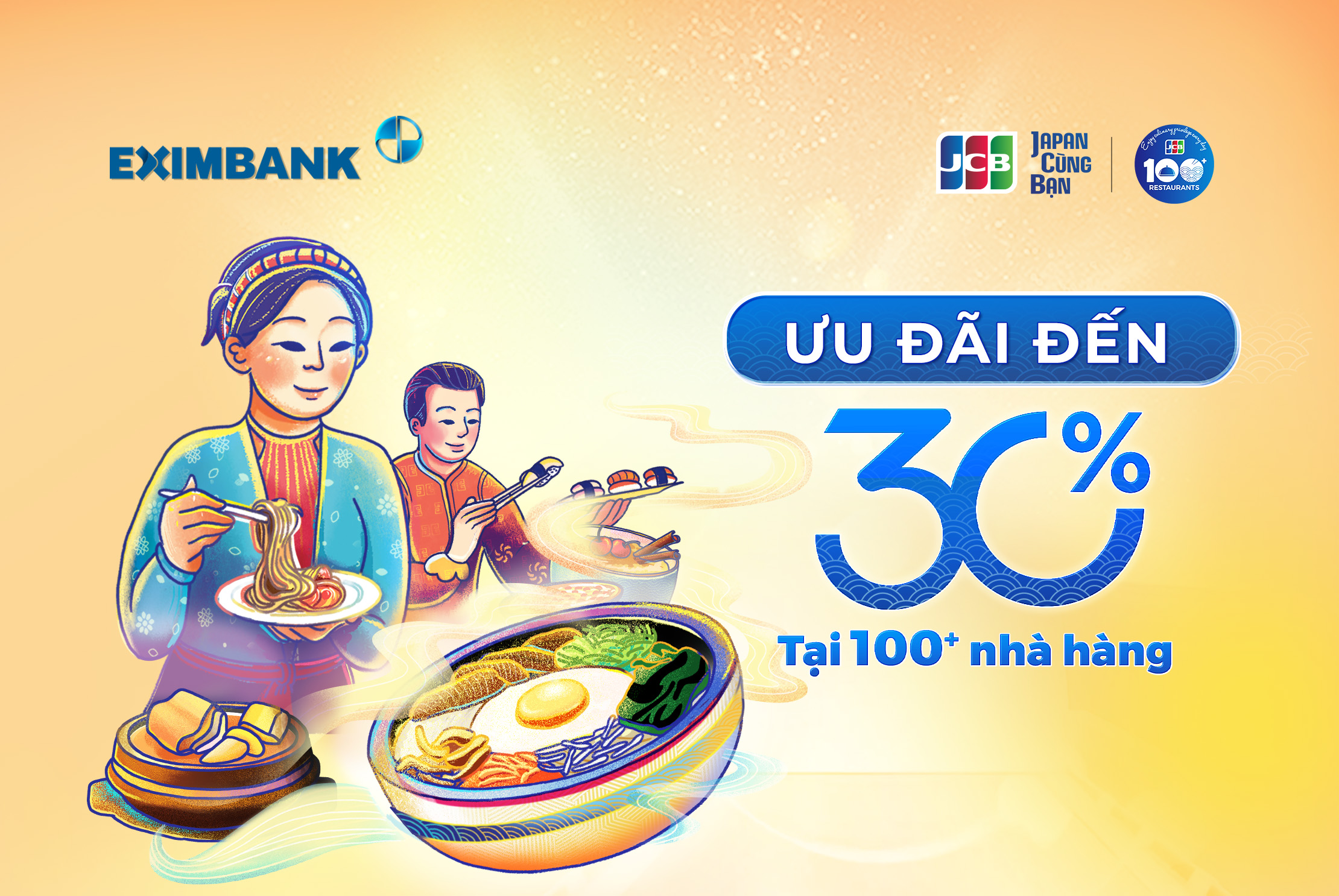 Giảm đến 30% với thẻ tín dụng Eximbank JCB tại 100+ nhà hàng khi thanh toán thẻ Eximbank JCB